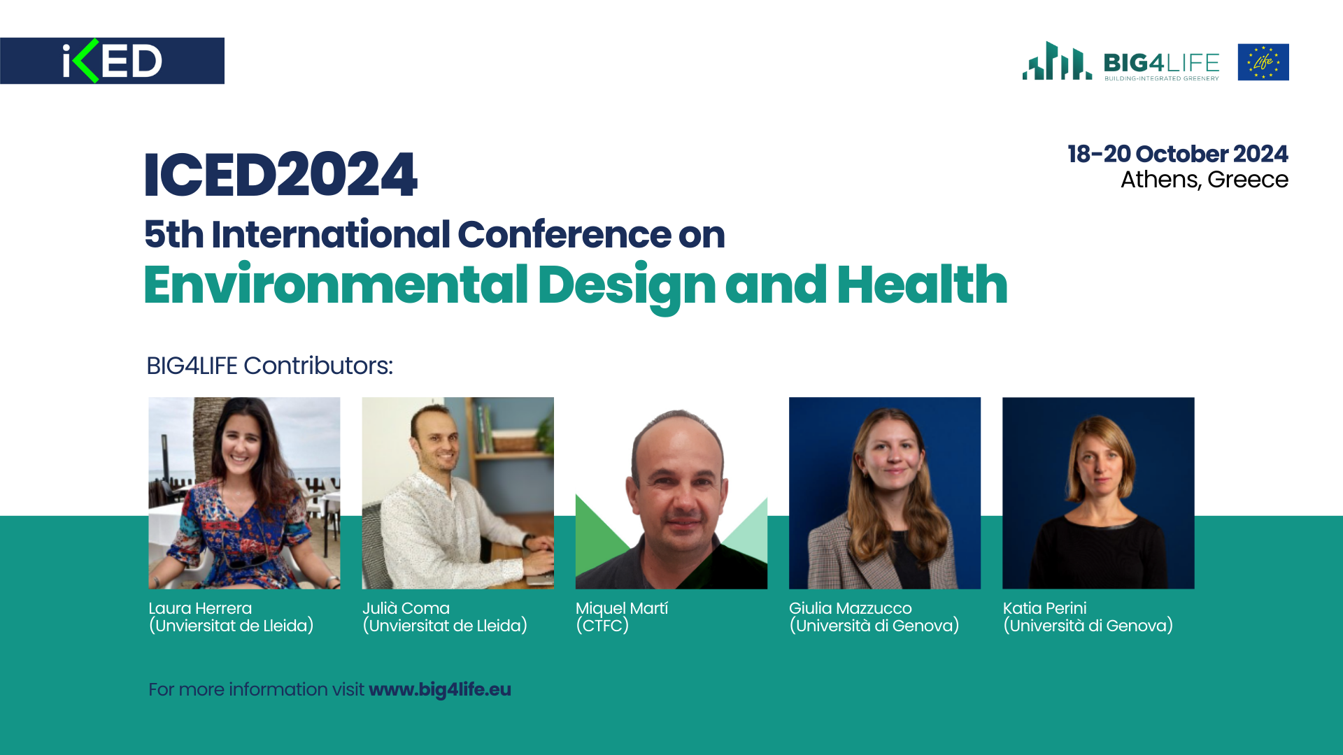 The BIG4LIFE consortium will participate in the 5th International Conference on Environmental Design and Health (ICED2024) organized by our partner...
